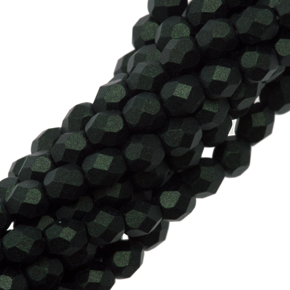 100 Czech Fire Polished 4mm Round Bead Metallic Suede Dark Forest (79052)