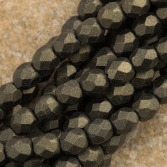 100 Czech Fire Polished 4mm Round Bead Metallic Suede Dark Green (79082)