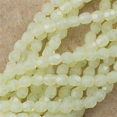 100 Czech Fire Polished 4mm Round Bead Milky Jonquil (81000)